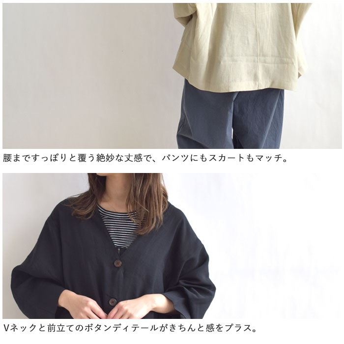 身体のラインを拾わず、気負いなく羽織れるのが魅力。