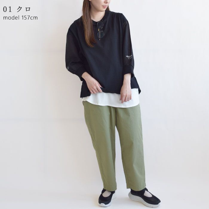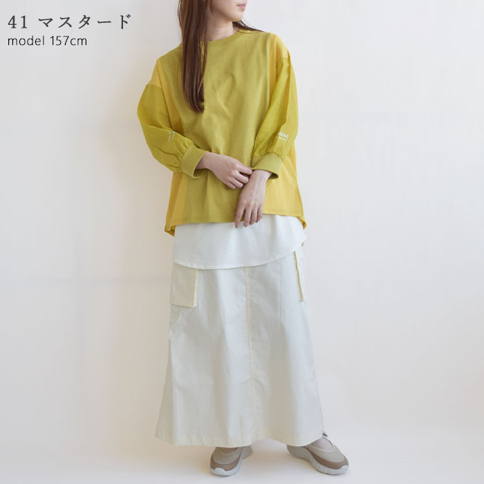 適度なゆとりのあるシルエットで、タックイン・アウトどちらでも着こなしやすい一枚。