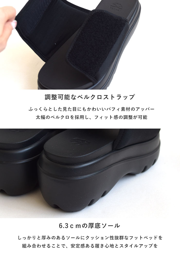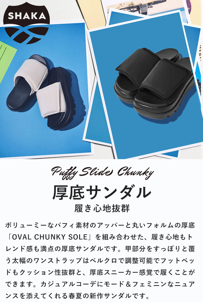 | 商品説明 | ボリューミーなフォルムと厚底ソールを組み合わせたSHAKA(シャカ)の新作厚底サンダル