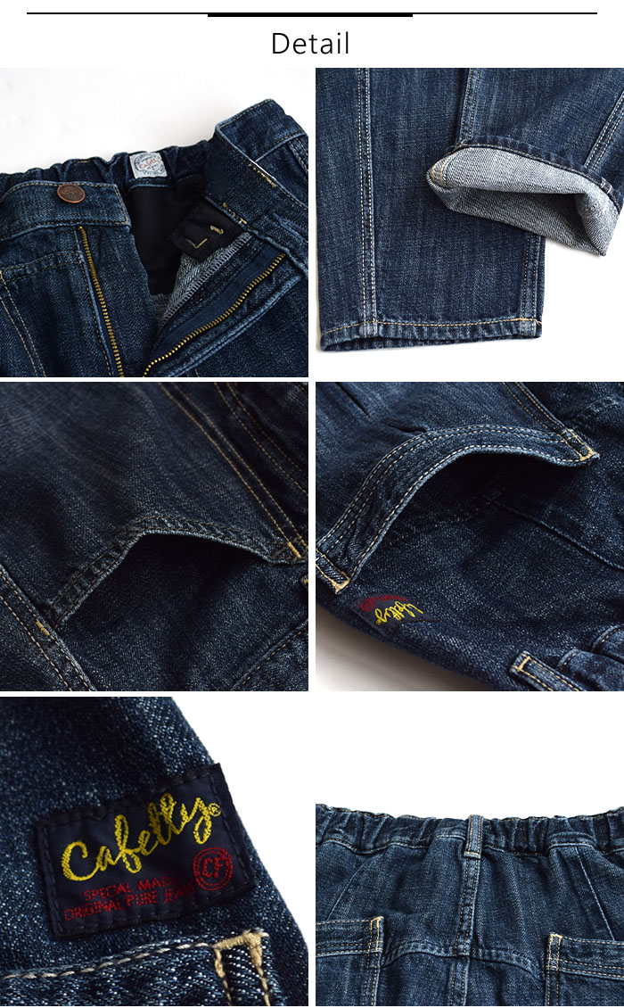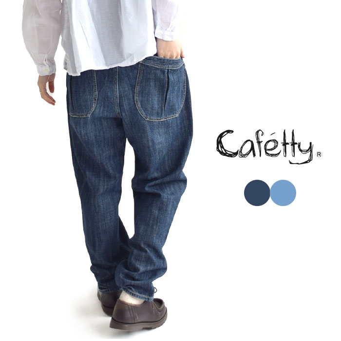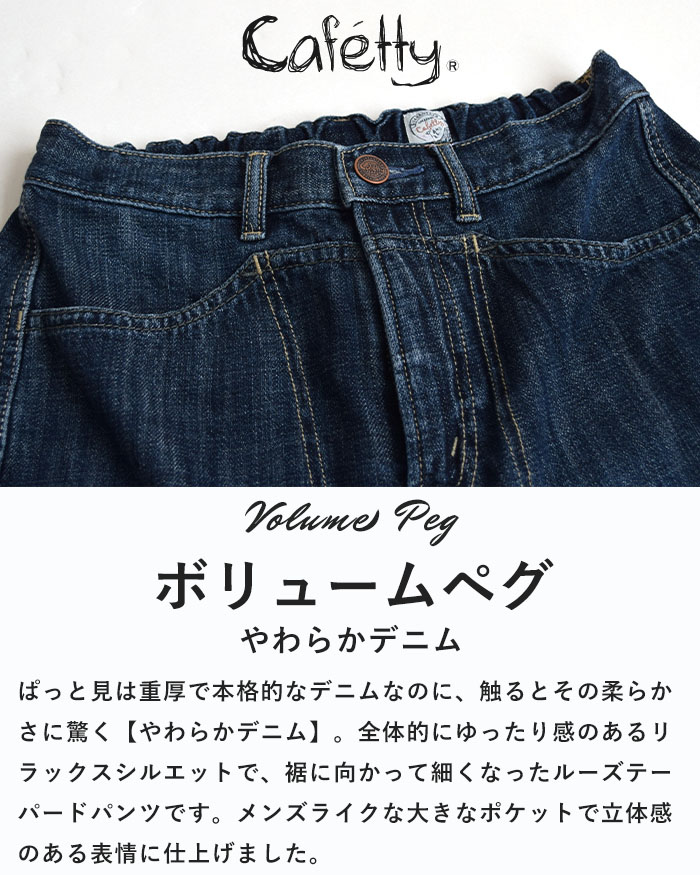【Cafetty】 デニムパンツ ゆったり ボリュームペグ