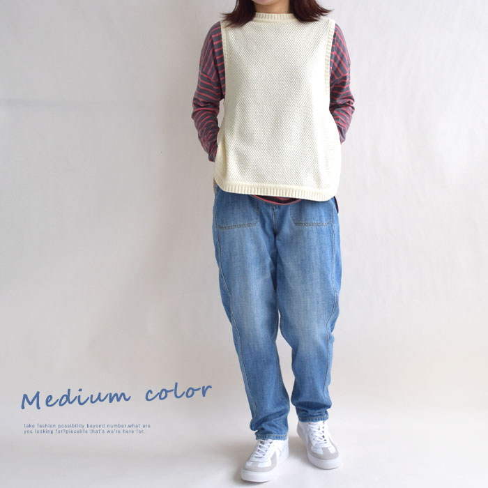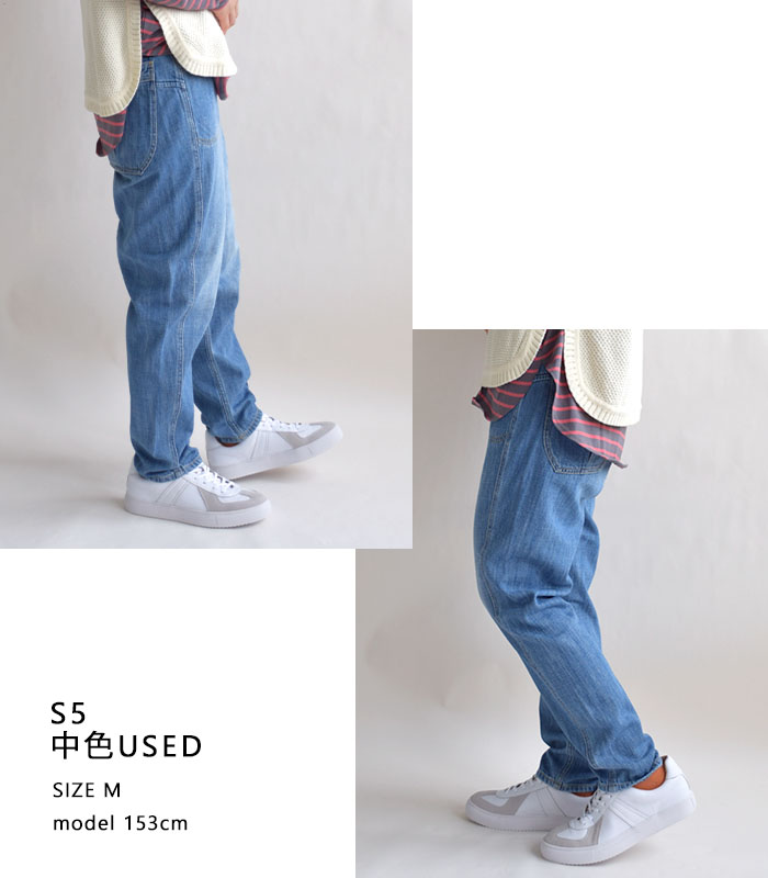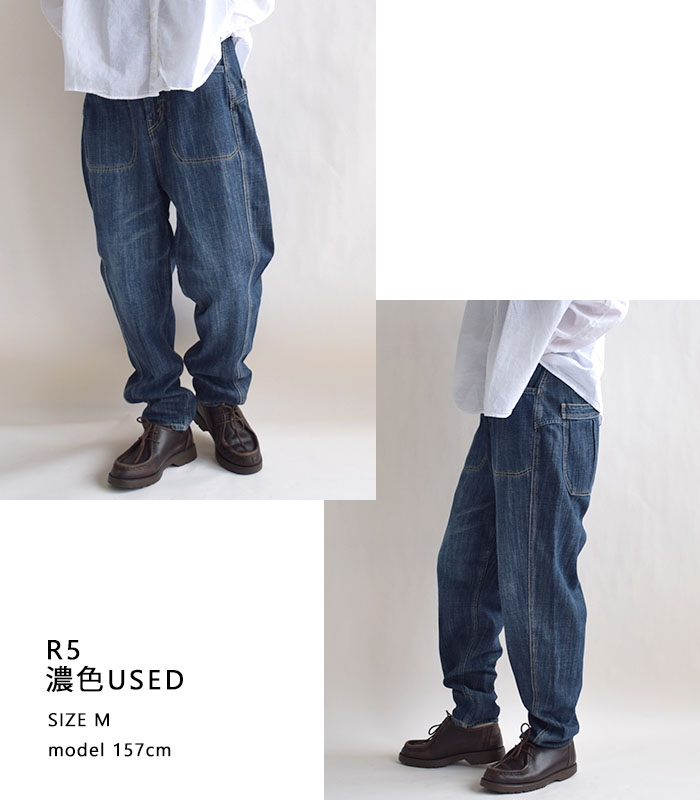 太めの糸で甘織りに仕上げ、ざっくりとした柔らかい触り心地と軽さを兼ね備えた、ロングシーズンはいていただける素材です。 全体的にゆったり感のあるリラックスシルエットで、裾に向かって細くなったルーズテーパードパンツです。 ダブルウエストの様に仕上げたワークデザインは、丸みのあるカーブステッチや太番手のステッチでインパクトをつけました。 ピスポケットは素材感を活かしたタック入りデザインで、メンズライクな大きなポケットで立体感のある表情に仕上げました。 |