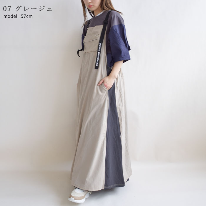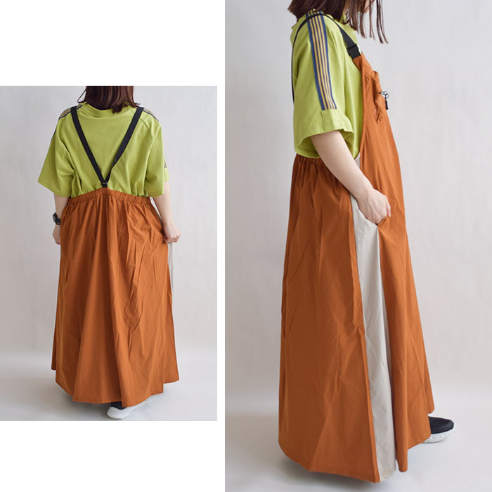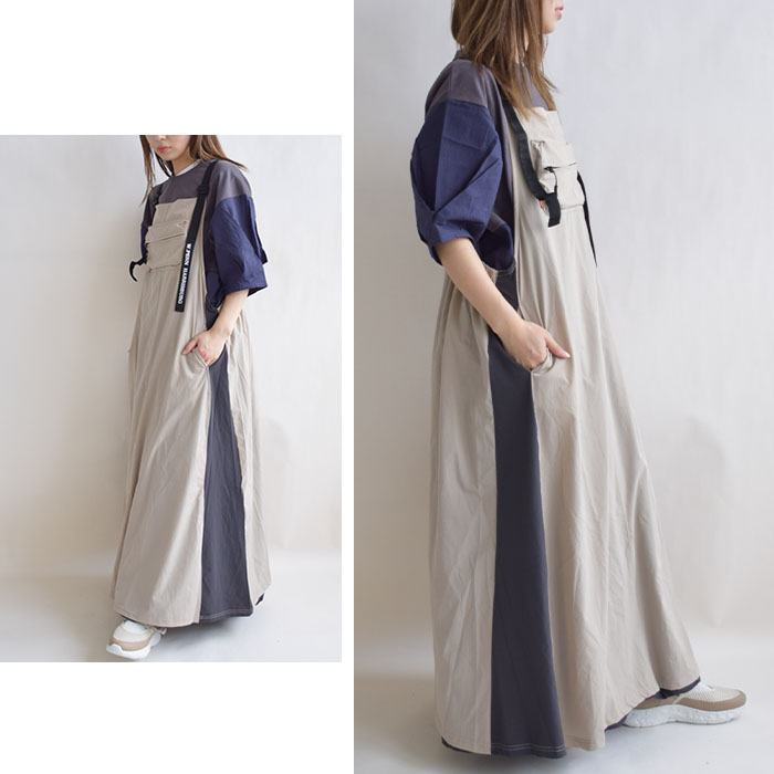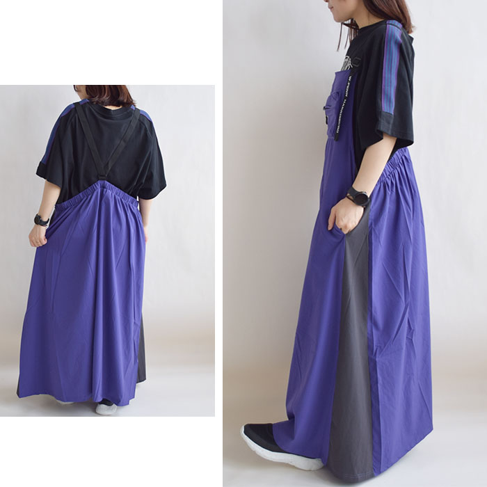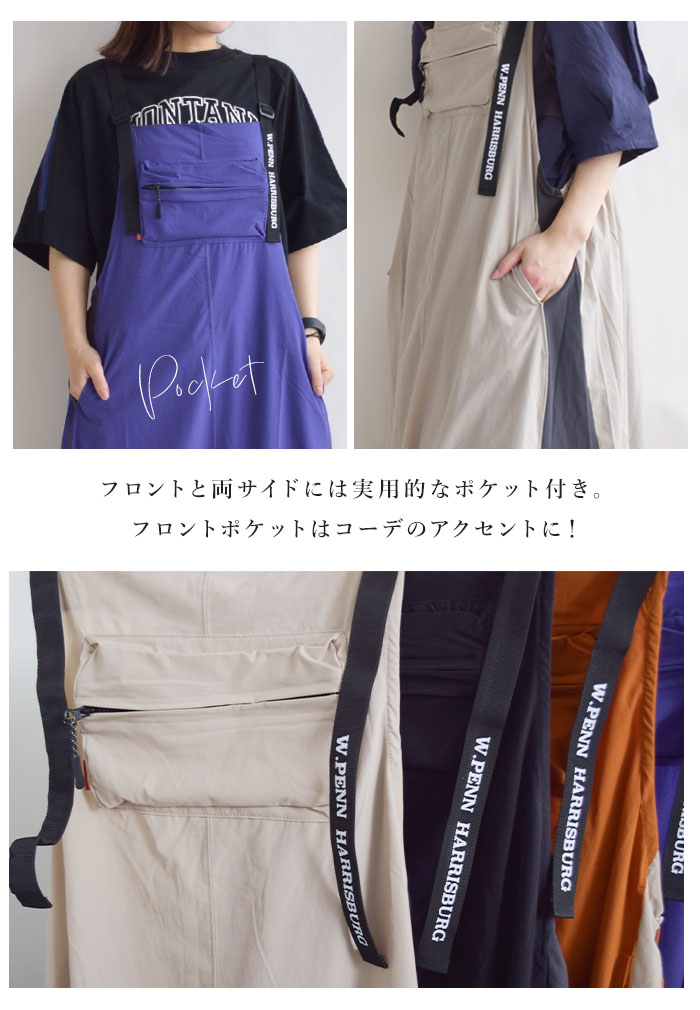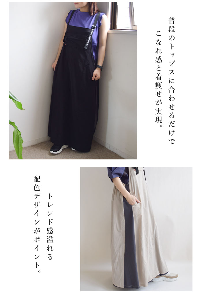 【iriey】ストレッチナイロン 配色切替 ポケット付き シ?ャンスカ