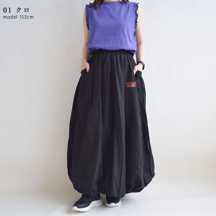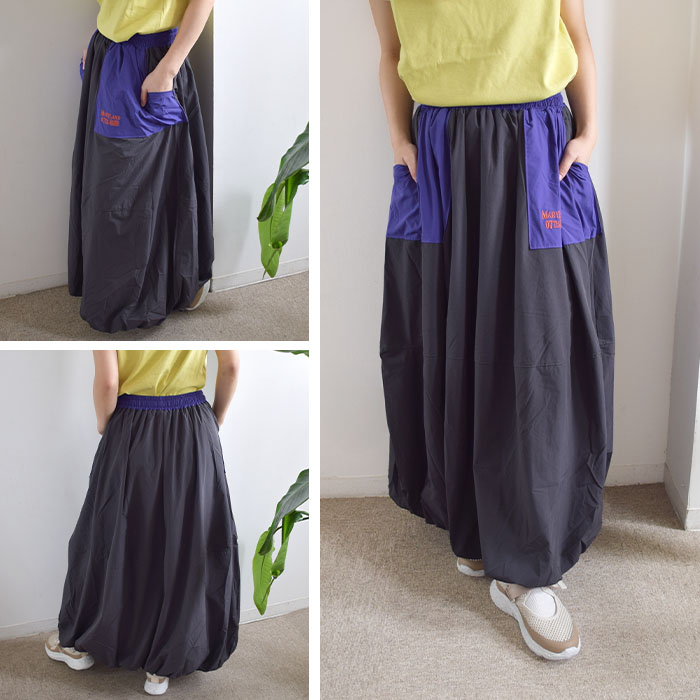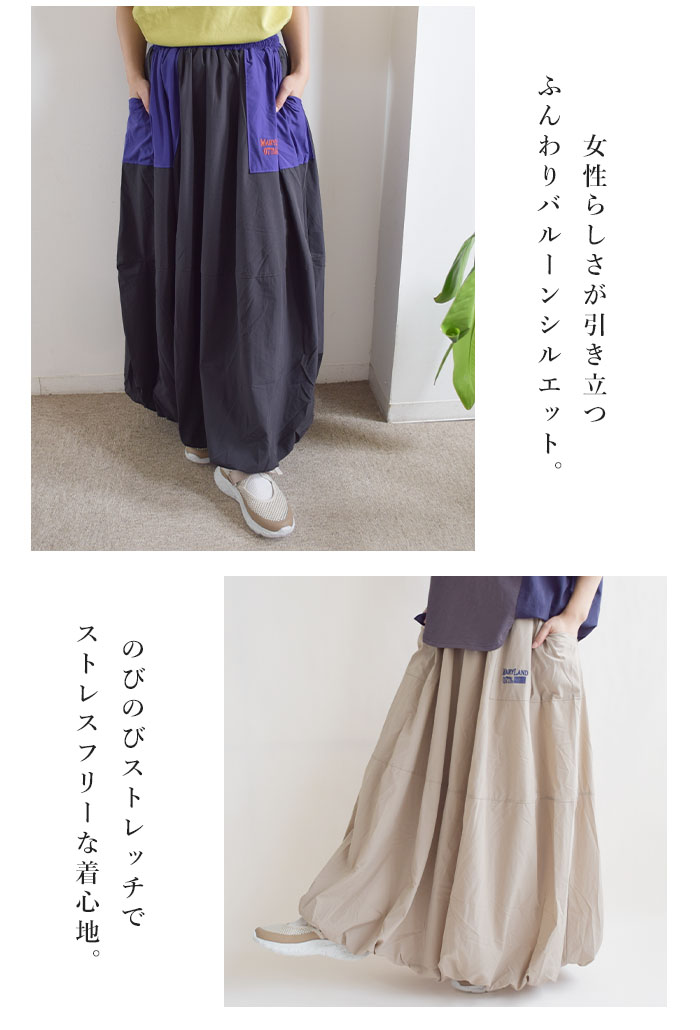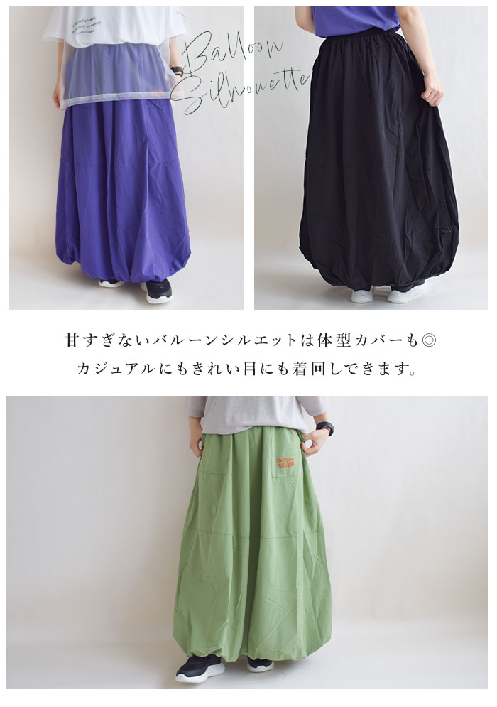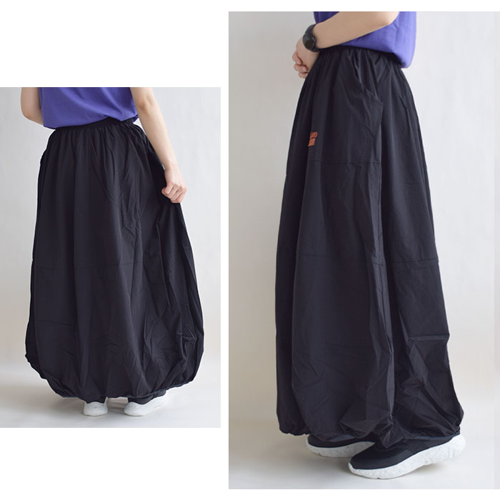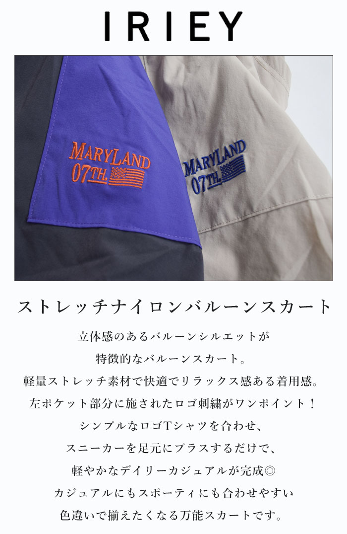 【iriey】ストレッチ ナイロン スカート 刺繍入り バルーンスカート