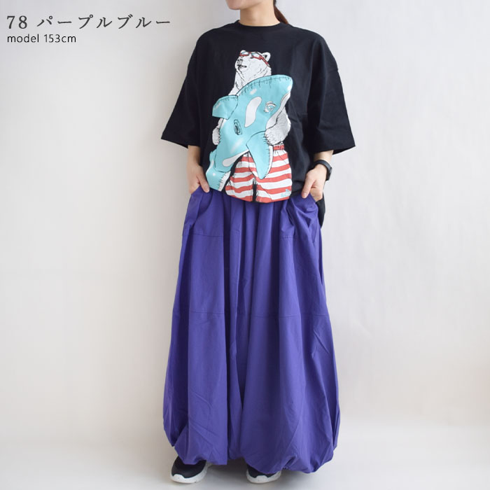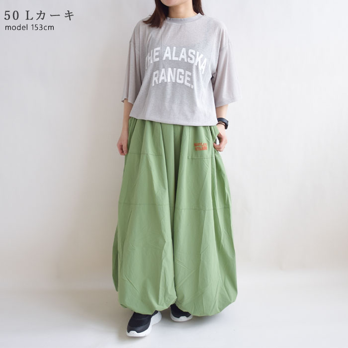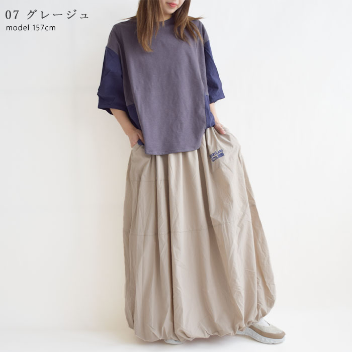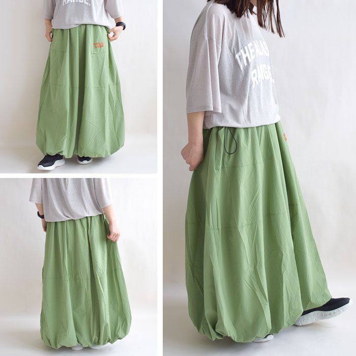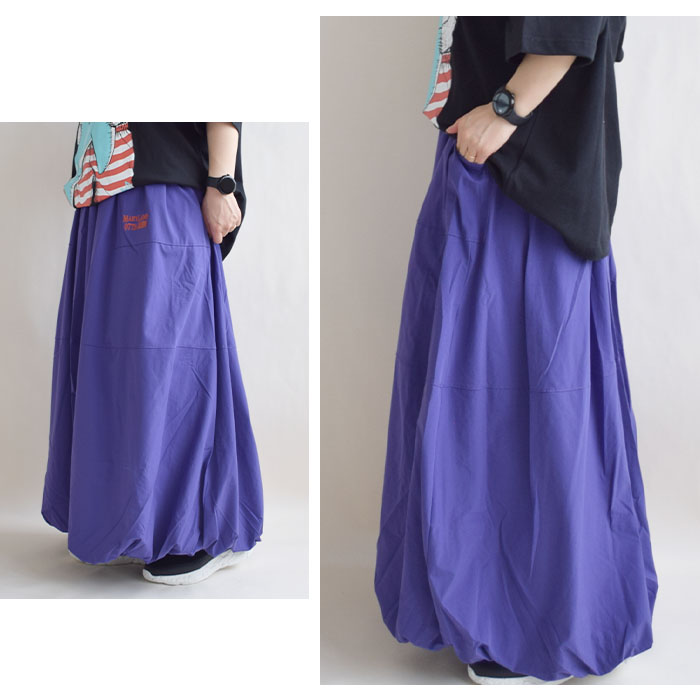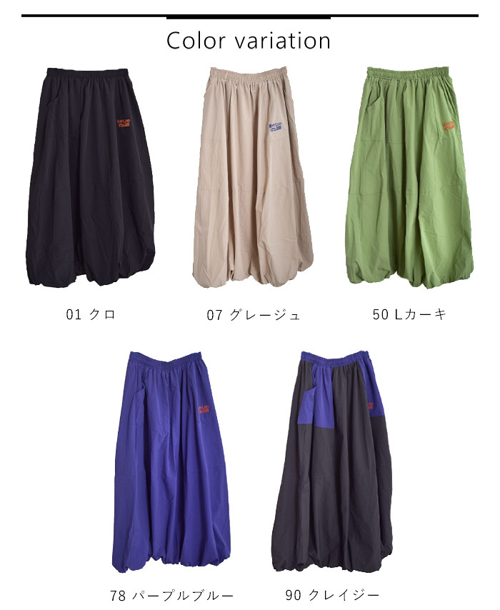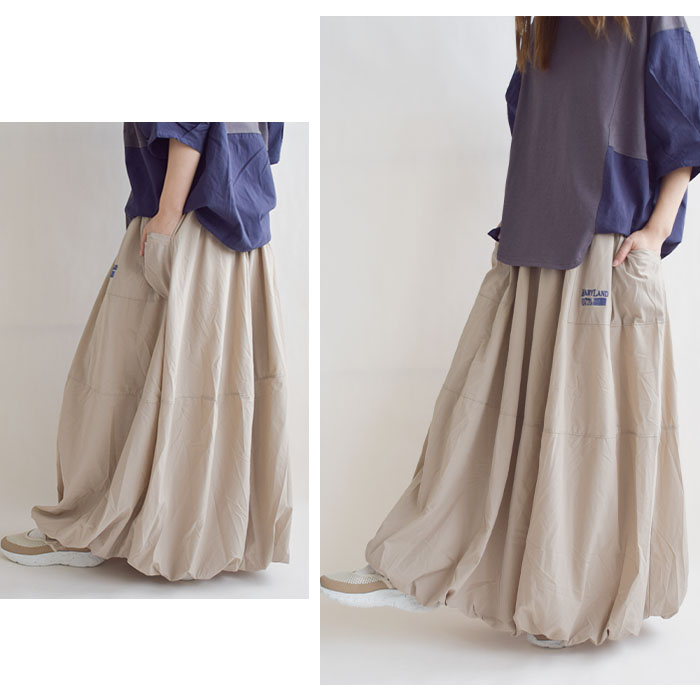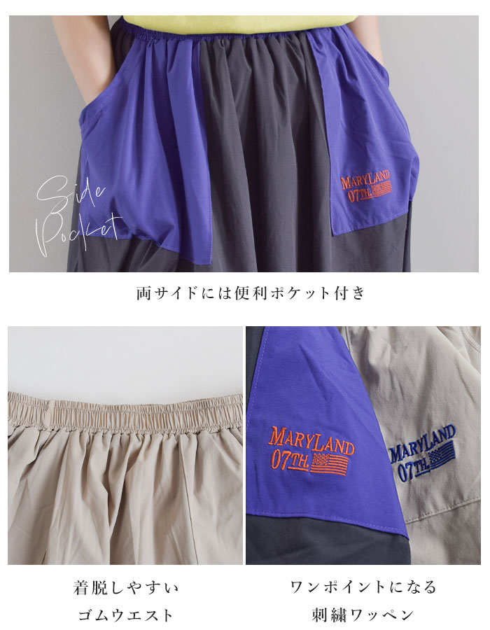 【iriey】ストレッチ ナイロン スカート 刺繍入り バルーンスカート