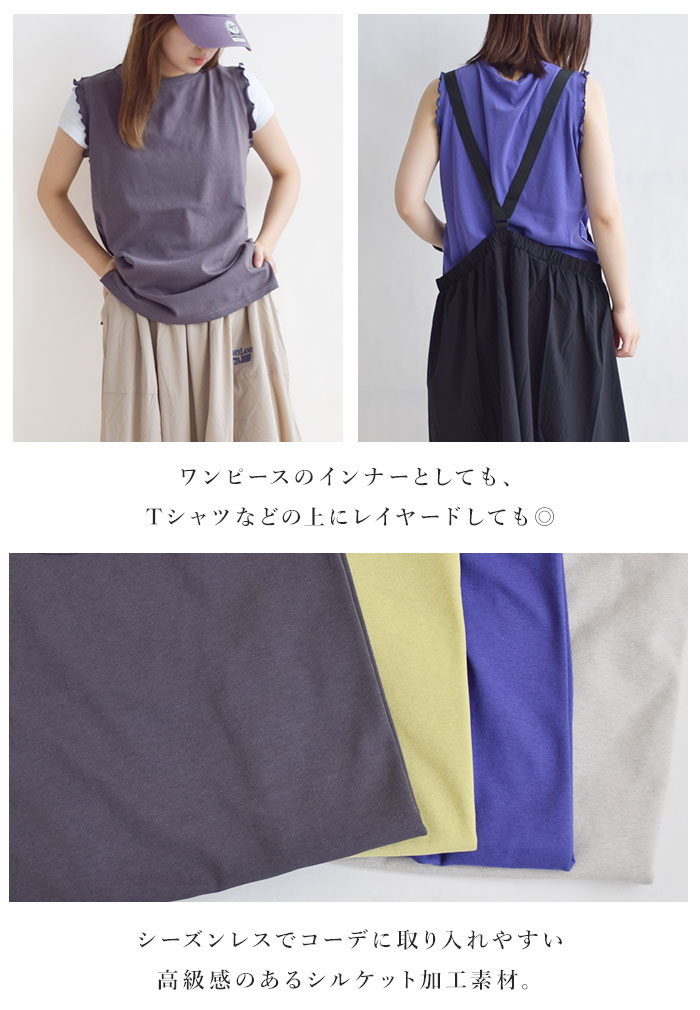 一枚で着て頂くのはもちろん、シャツやワンピースのインナーに大活躍。