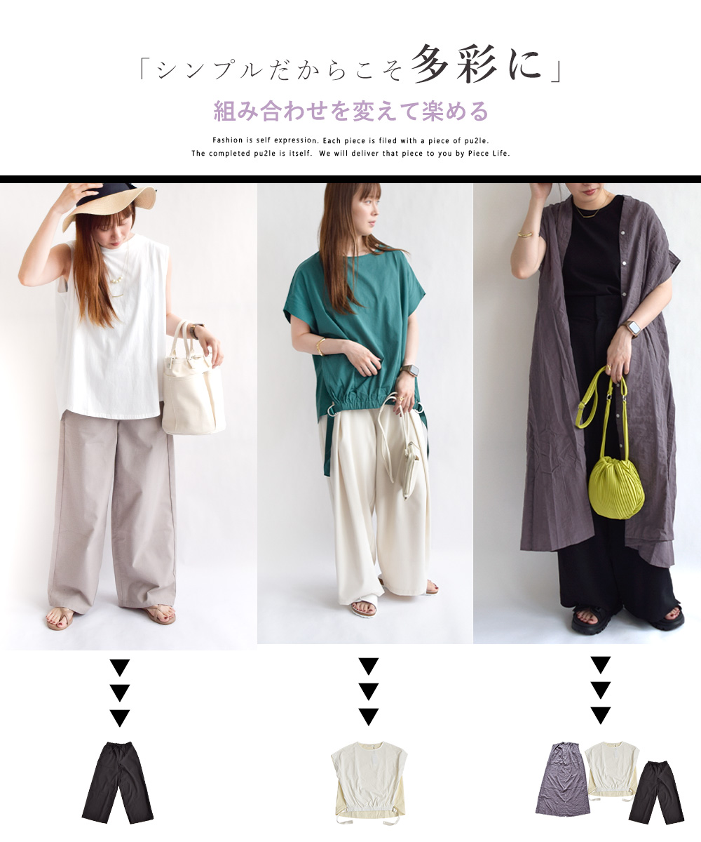 どのアイテムもシンプルで使いやすいので、他のアイテムと合わせて着回し力抜群です。
