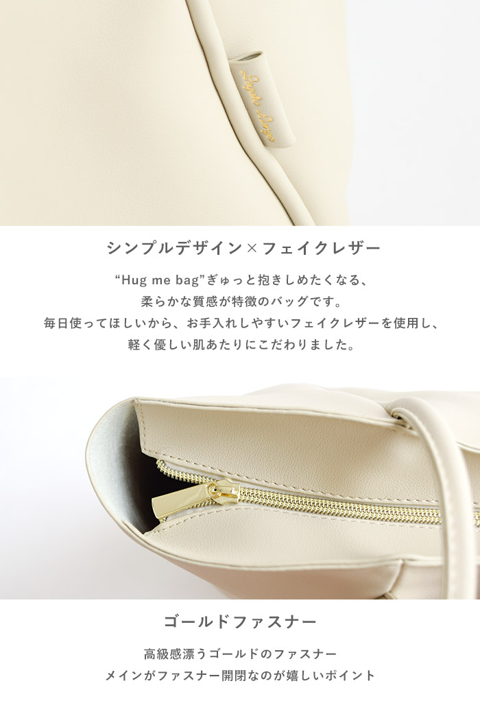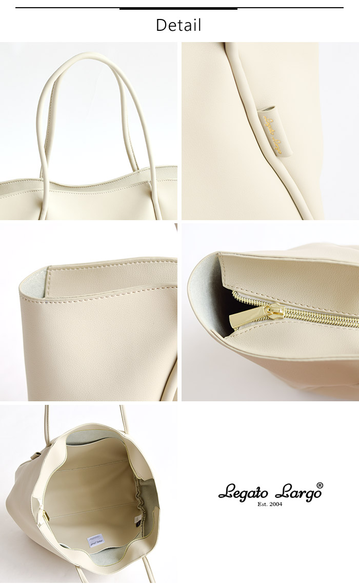 | 商品説明 | シンプルで上品な雰囲気で人気のLegato Largoより、A4トートバッグの登場。 “Hug me bag”ぎゅっと抱きしめたくなる、柔らかな質感が特徴のバッグです。 毎日使ってほしいから、お手入れしやすいフェイクレザーを使用し、軽く優しい肌あたりにこだわりました。 A4サイズが入るトートバッグなので通勤バッグとしてもおすすめ。 様々なシーンにはまるようシンプルなデザインに仕上げました。 |