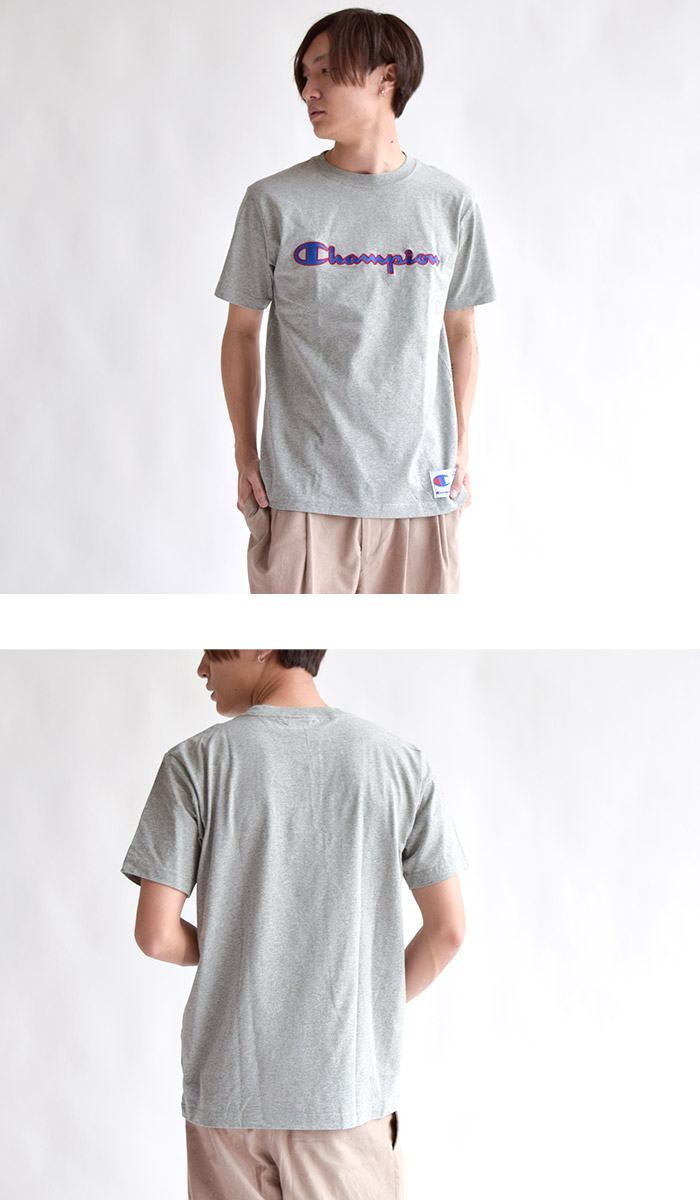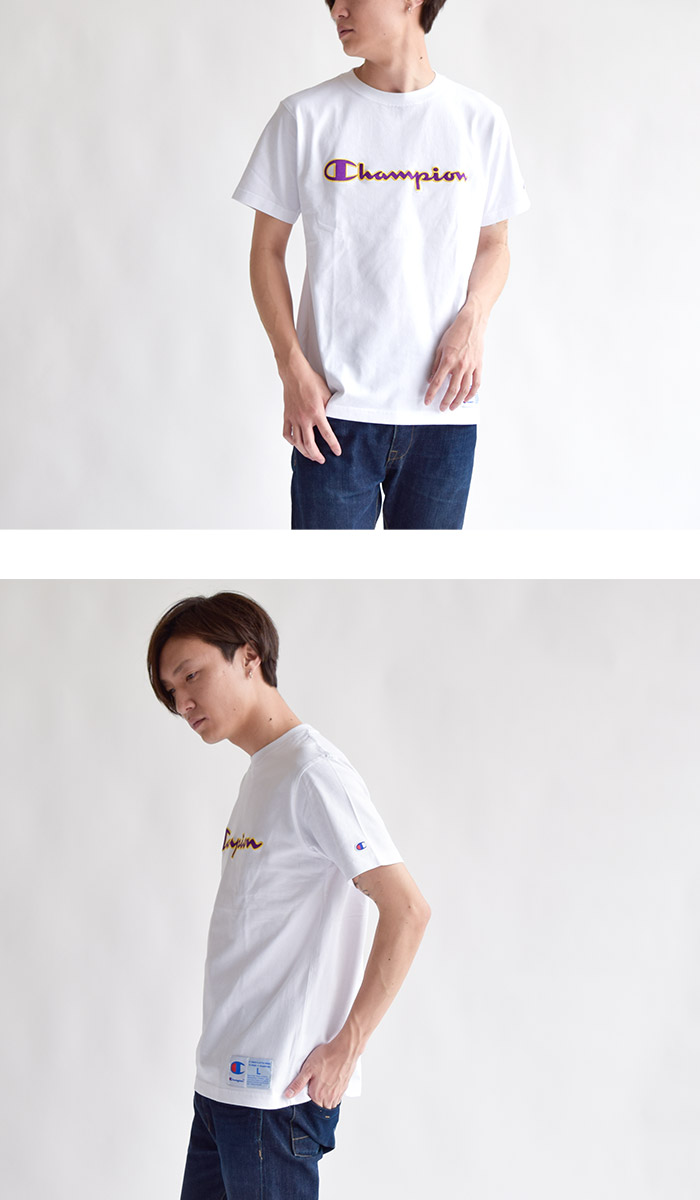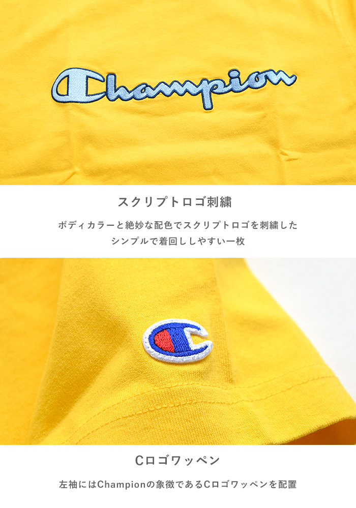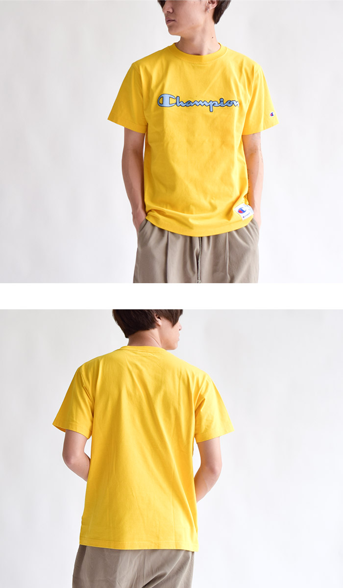 Championのロゴをフロントにプリント、左袖にChampionの象徴であるCロゴワッペンを配置したシンプルなデザインのTシャツが登場。