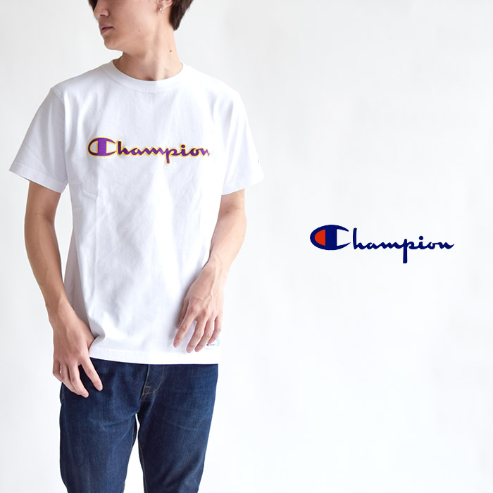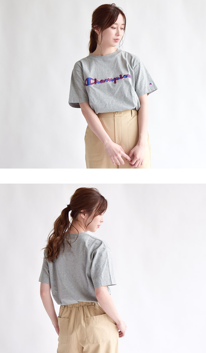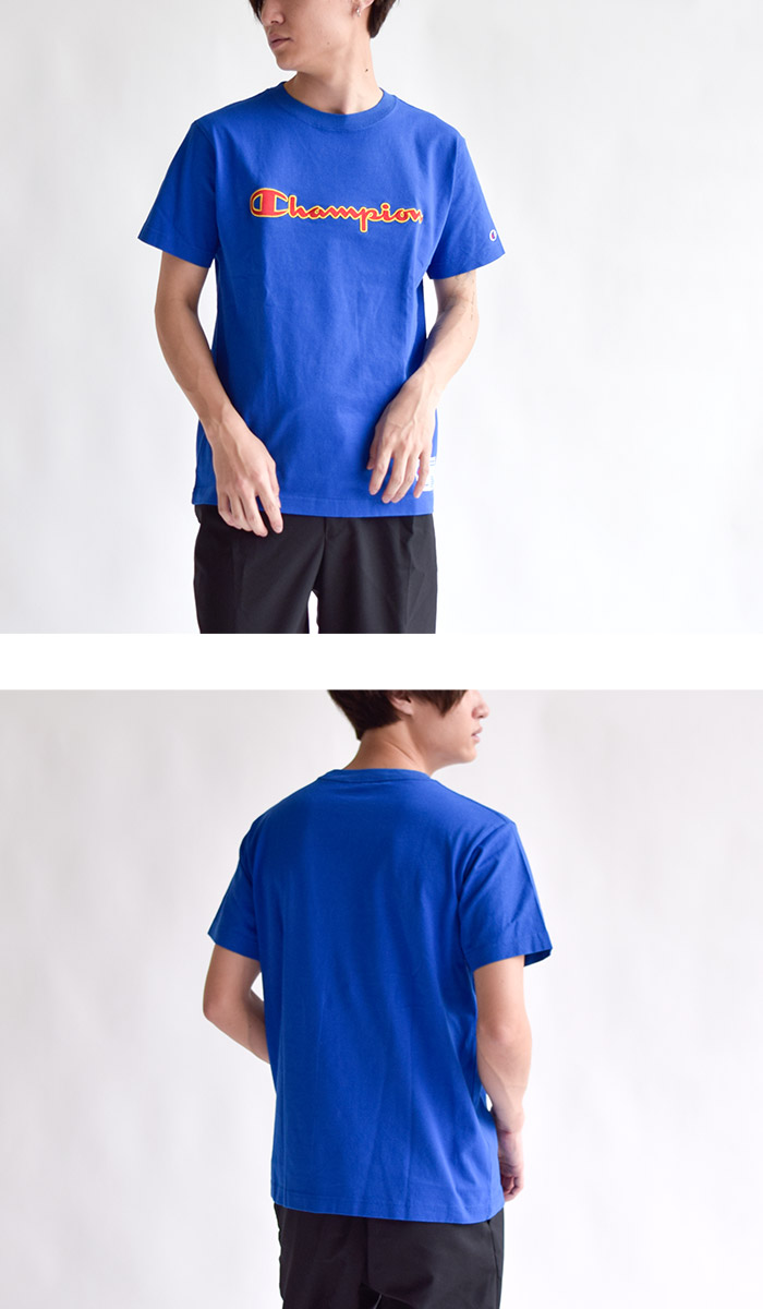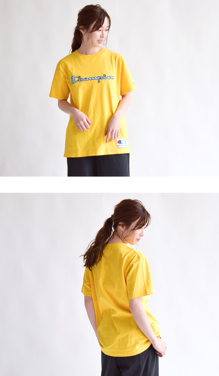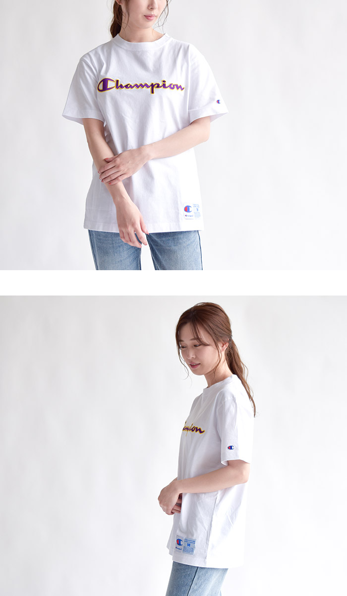 Championのロゴをフロントにプリント、左袖にChampionの象徴であるCロゴワッペンを配置したシンプルなデザインのTシャツが登場。