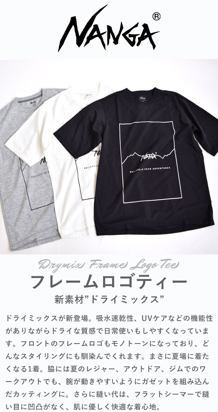 商品説明 夏場の汗ばむ季節に着用しても、快適に過ごせる新素材ドライミックスのTシャツ。吸水速乾、UVケアなどの機能性がありドライな質感のため、暑い季節の日常使いに最適です。フロントのフレームロゴもモノトーンで、どんなスタイリングにも馴染んでくれます。まさに夏場に着たくなる1着。
