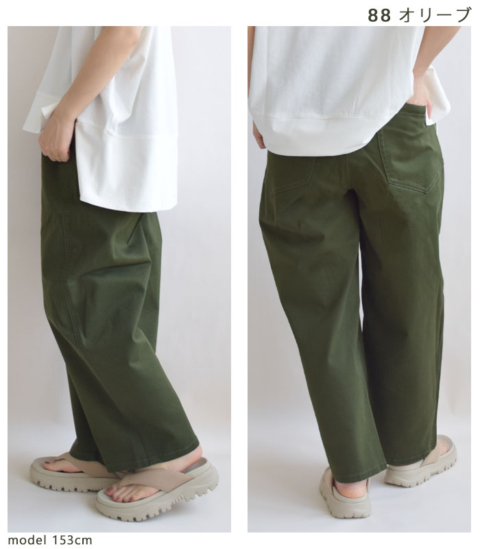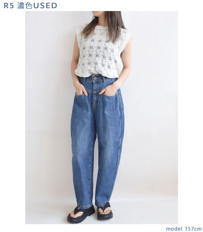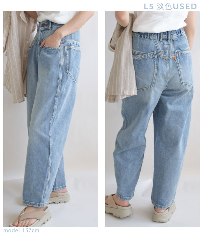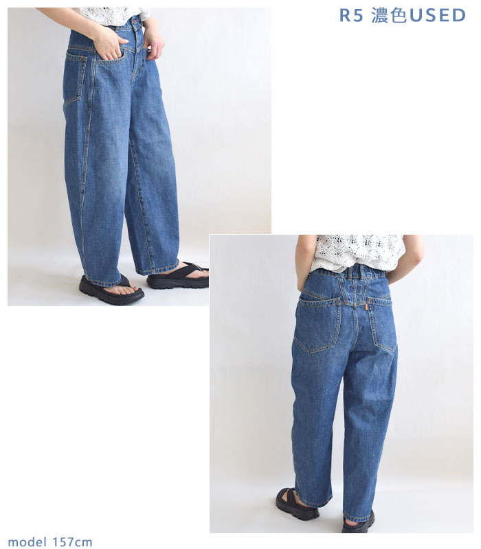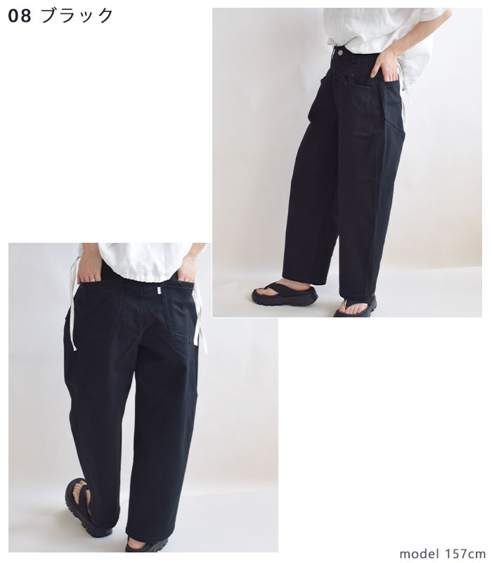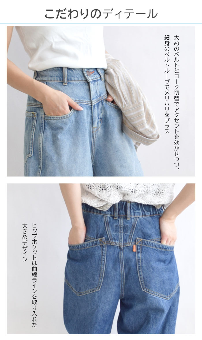 | 商品説明 | 穿き込んだような風合いが魅力の、綿100%ヴィンテージライクデニムパンツ。あえて古着のような色合いに仕上げたデニム素材は、硬すぎず柔らかすぎない絶妙な風合いで、肌なじみも抜群。しっかりとした生地感ながら、はき心地はストレスフリー。たっぷりとしたボリューム感のあるシルエットは、丸みのある脇ラインと計算されたカーブで裾に向かってすっきりとまとまる人気のコクーンシルエットを採用。ウエストは太めのベルトとヨーク切替でアクセントを効かせつつ、細身のベルトループでメリハリをプラス。ヒップポケットは曲線ラインを取り入れた大きめデザインで、フロントポケットとも連動感のある仕上がりに。さらに、ウエスト背面はインゴム仕様で、フィット感がありながらも締めつけ感のない快適な穿き心地です。ナチュラルな風合いと、どんなトップスとも相性の良いデザインで、大人カジュアルコーデやナチュラル系ファッションにもぴったりの1本。穿くだけでこなれた雰囲気を演出できるアイテムです。 は縦長のスラッシュポケットを採用、ウエスト〜腰まわりをスッキリまとめます。足首が見えるくらいの丈感でワイドながら軽快なイメージに仕上げました。 |