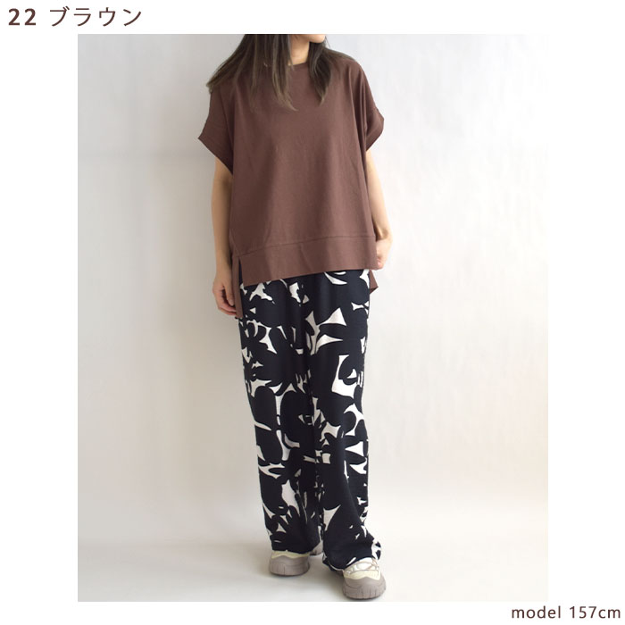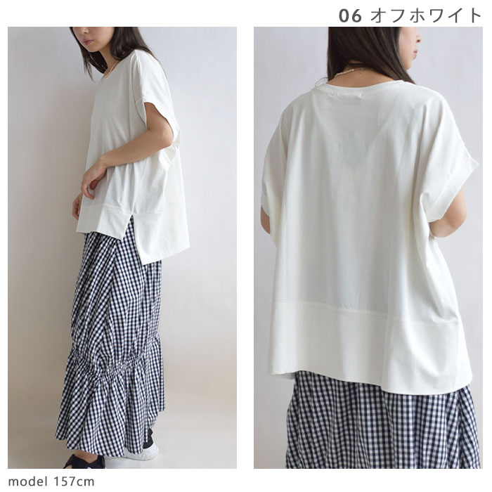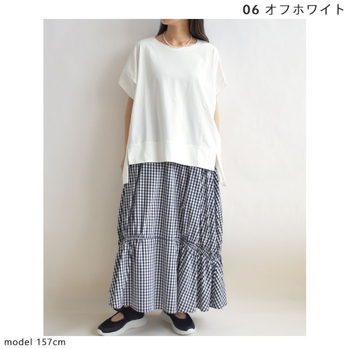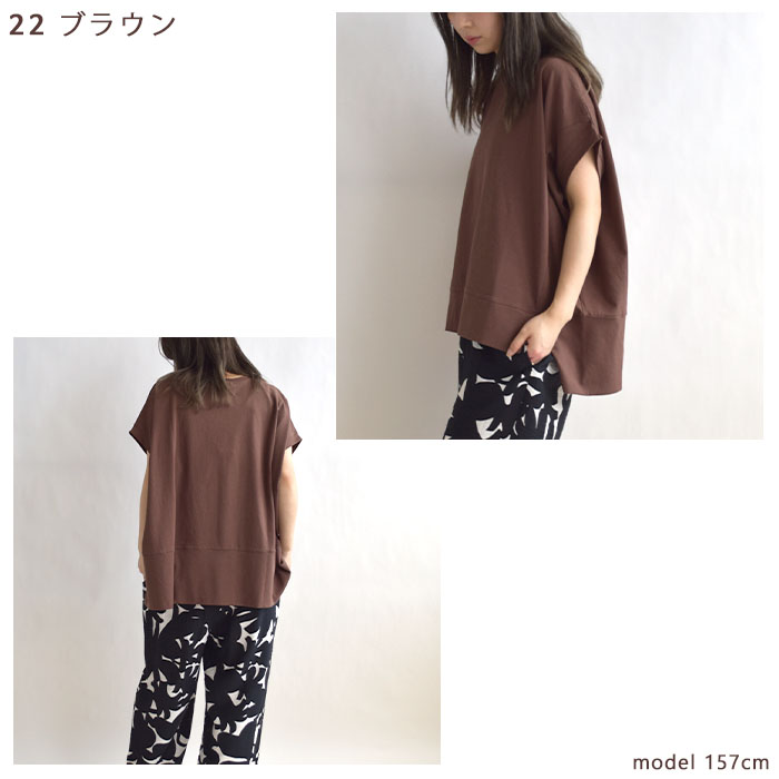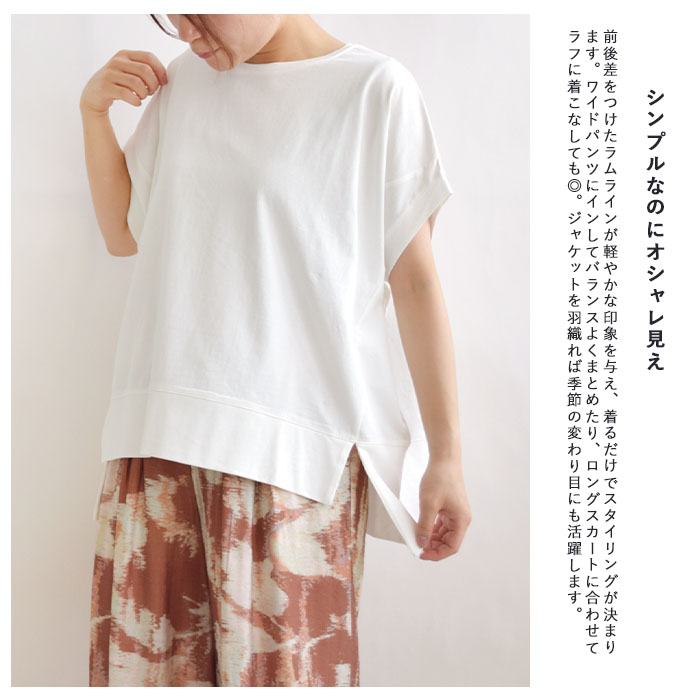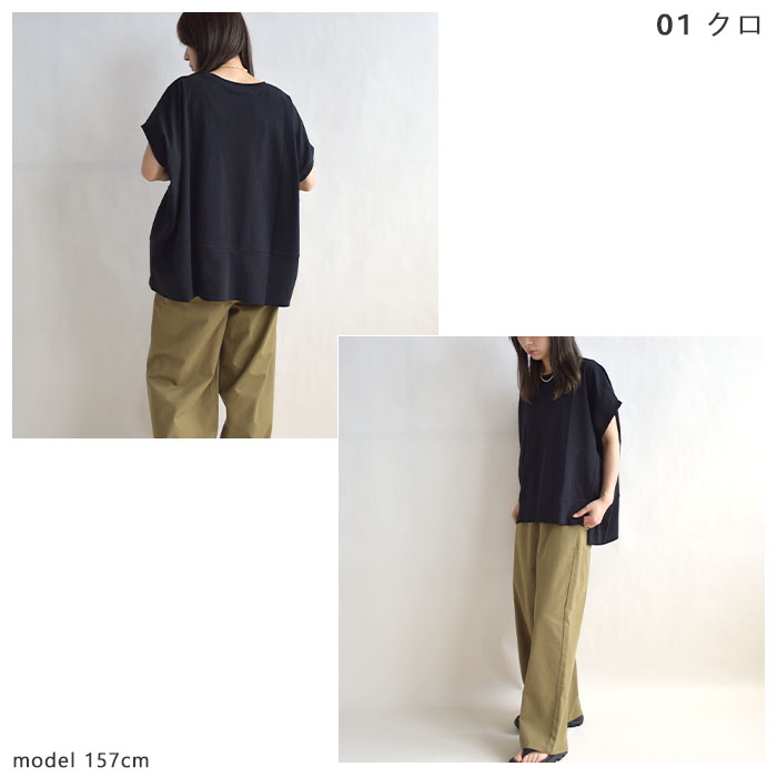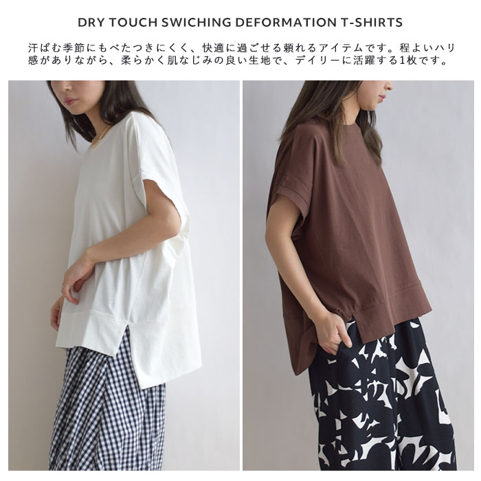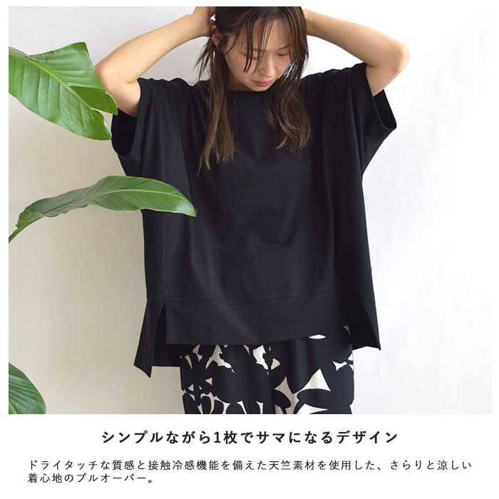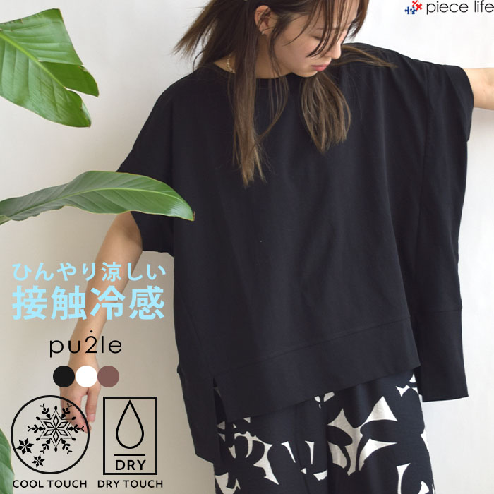 【pu2le】トップス 接触冷感 ドライタッチ天竺 アシメ フロント タックプルオーバー Tシャツ