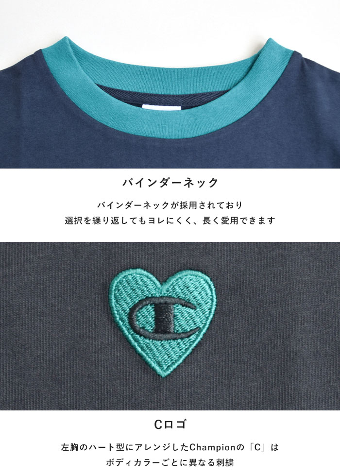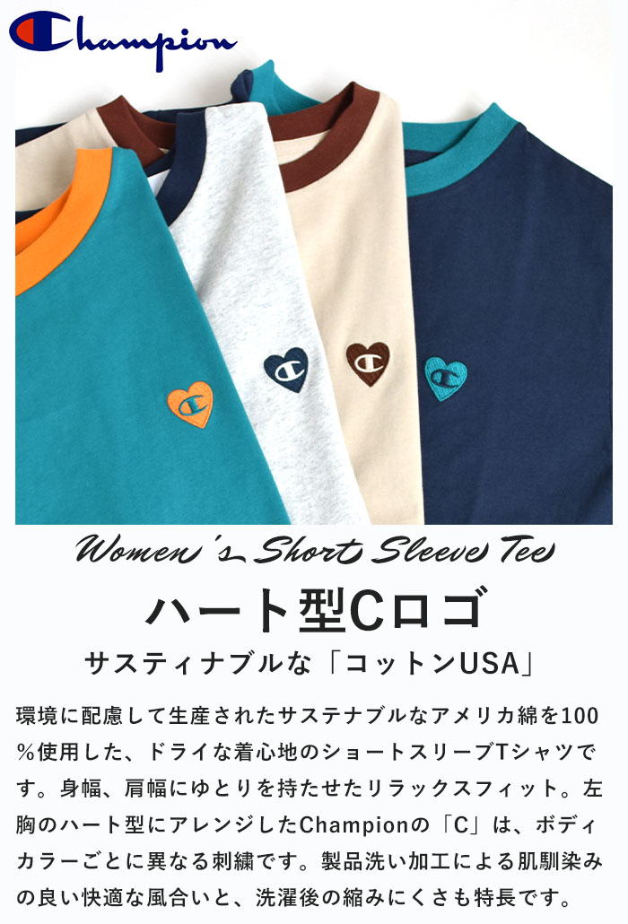| 商品説明 | 環境に配慮して生産されたサステナブルなアメリカ綿を100%使用した ドライな着心地のショートスリーブTシャツです。 身幅、肩幅にゆとりを持たせたリラックスフィット。 左胸のハート刺繍にあしらったChampion(チャンピオン)の「C」は 製品洗い加工による肌馴染みの良い快適な風合いと |