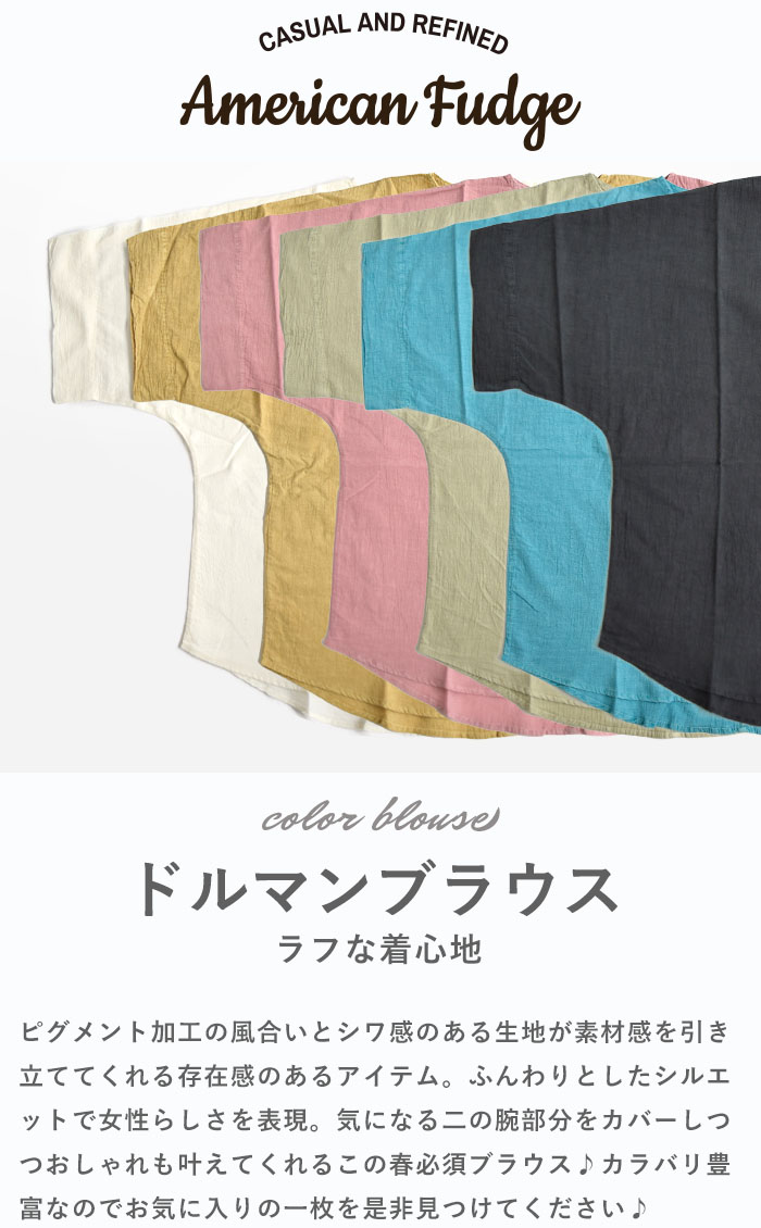 | 商品説明 | ピグメント加工の風合いとシワ感のある生地が素材感を引き立ててくれる存在感のあるアイテム。 ふんわりとしたシルエットで女性らしさを表現。気になる二の腕部分をカバーしつつおしゃれも叶えてくれるこの春必須ブラウス♪ カラバリ豊富なのでお気に入りの一枚を是非見つけてください♪ |