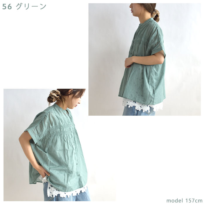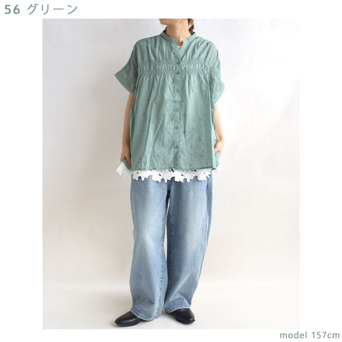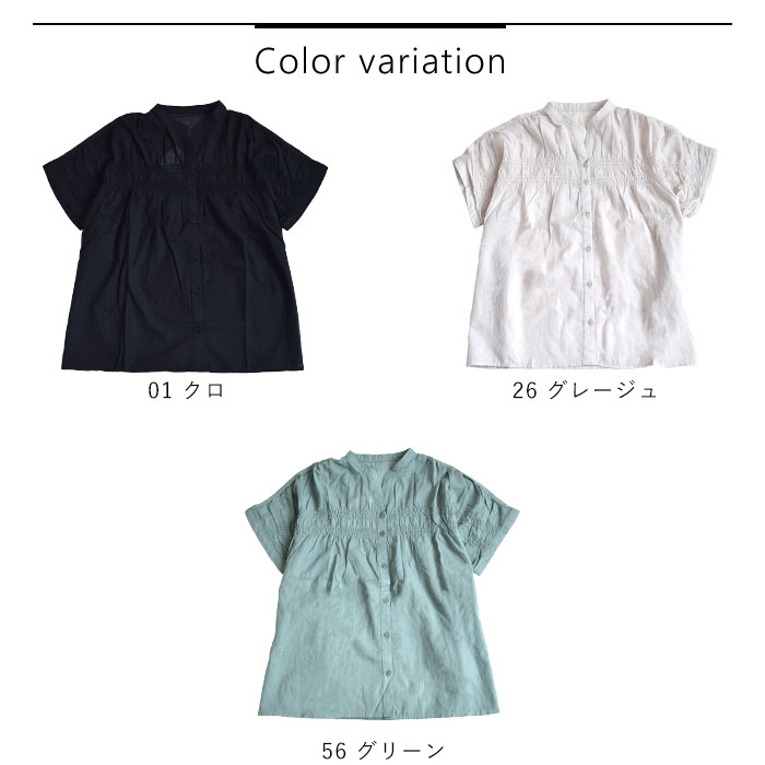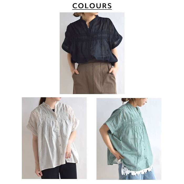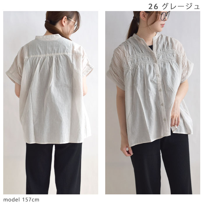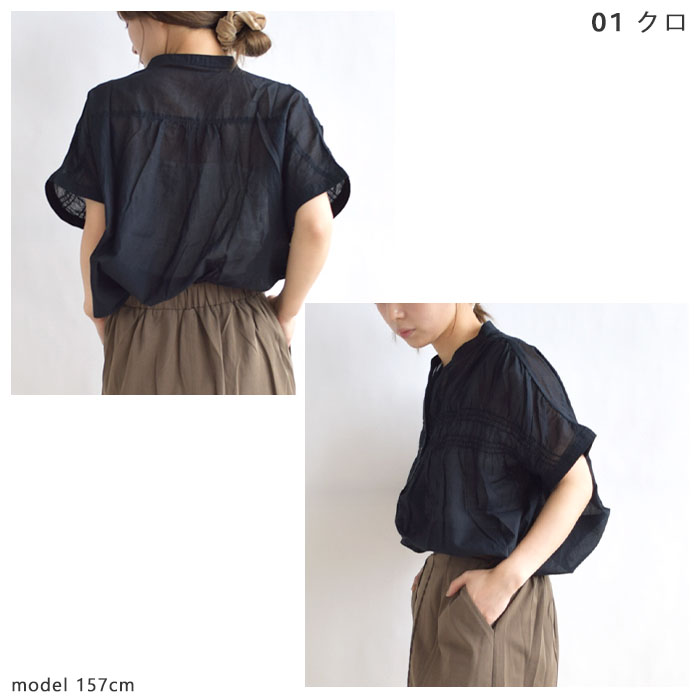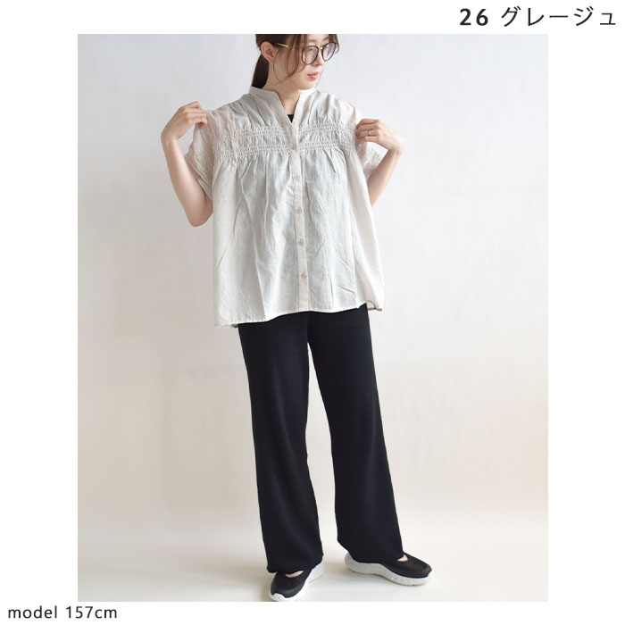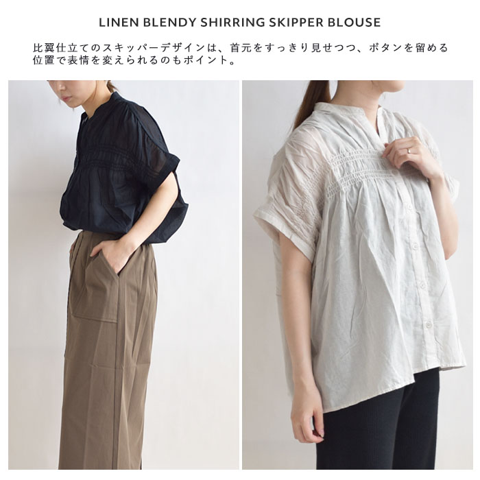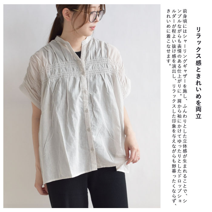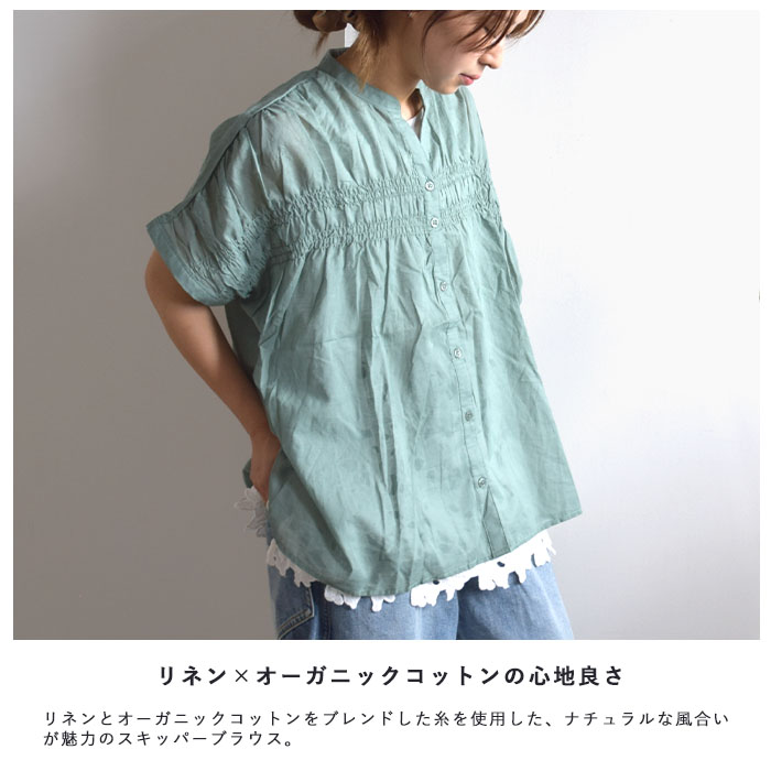 【pu2le】オーガニックコットン シャーリングスキッパーブラウス