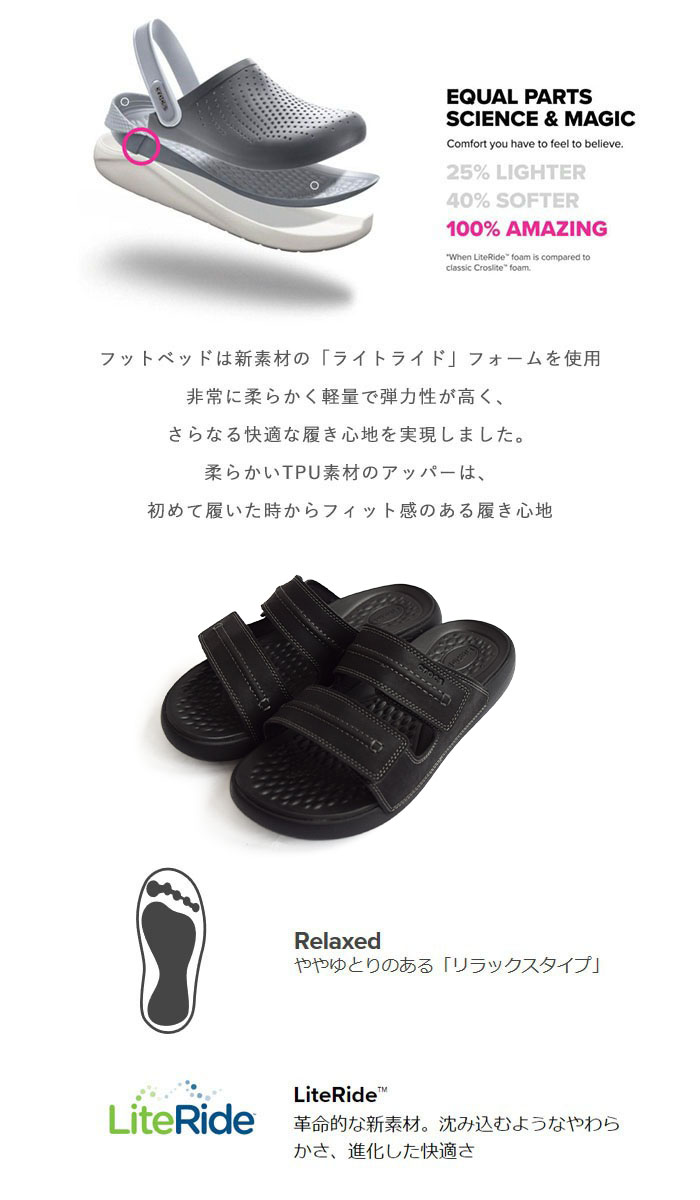 | 商品説明 | スタイリングとステッチのディテールを一新!フェイクレザーを使用した2ストラップのアッパー。インソールは非常に柔らかく軽量で弾力性に優れているライトライド フォームを採用。 |