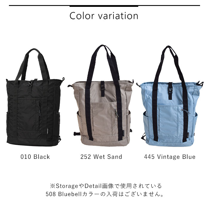 | 素材 | Recycled 100D/200D Twill(ナイロン100%) × 420D OX(ナイロン100%) |