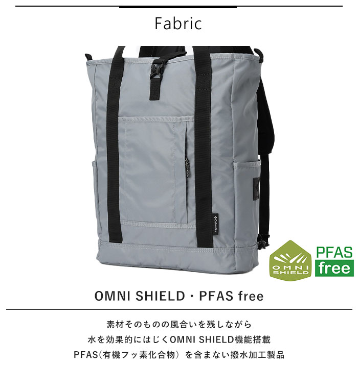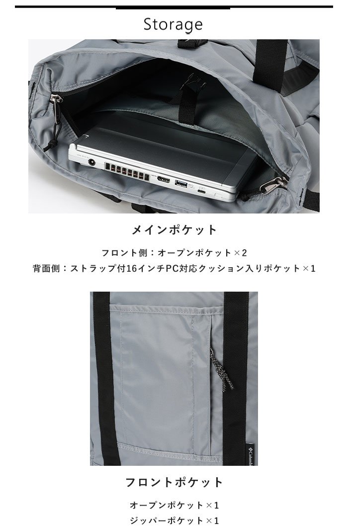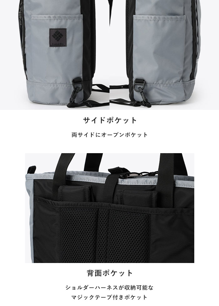 | 商品説明 | ・コロンビア独自のはっ水(撥水)機能「オムニシールド」 ・様々なシーンで活躍する2wayタイプのトートバッグ ・200Dのナイロンツイル素材 ・メインコンパートメント内背面側にストラップ付PC対応のクッション入りポケット ・メインコンパートメント内フロント側にスリーブポケット ・収納式のショルダーハーネス ・容量20L |