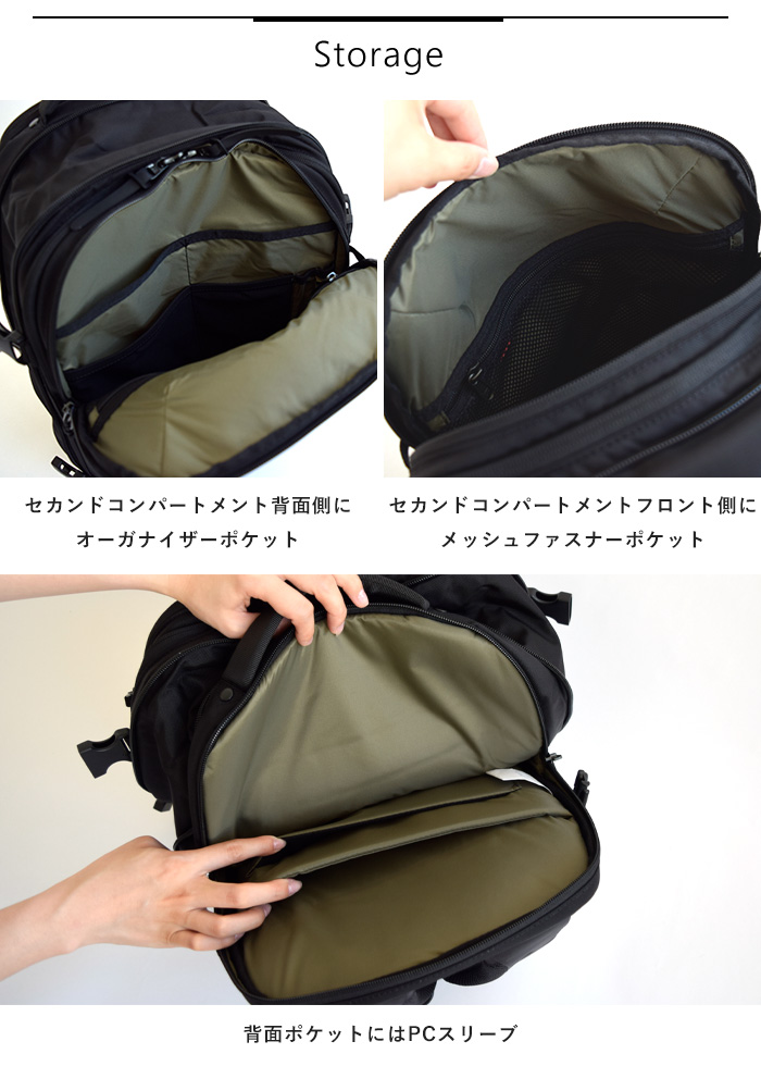 ・セカンドコンパートメント背面側にオーガナイザーポケット