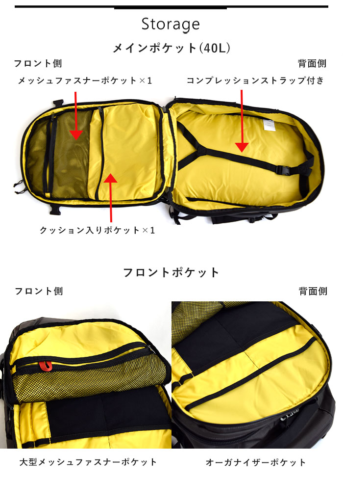 | 商品説明 | ・コロンビア独自のはっ水(撥水)機能「オムニシールド」 ・国内外の旅行に最適な大容量のトラベルバッグ ・メインコンパートメント内部フロント側に大きなメッシュファスナーポケットとクッション入りポケット ・メインコンパートメント内部背面側には縦型のコンプレッションストラップ ・メインコンパートメントとPCスリーブ(17インチ対応)にロッカブルファスナー ・セカンドコンパートメント内部フロント側に大型のメッシュファスナーポケット ・セカンドコンパートメント内部背面側にオーガナイザーポケット ・セカンドコンパートメントに簡易セキュリティーシステム ・ショルダーハーネスにリフレクターロゴプリント ・取り外し式ウエストテープ ・取外し式チェストストラップ ・サイドコンプレッションをまとめるゴムバンド ・容量40L(目安) |