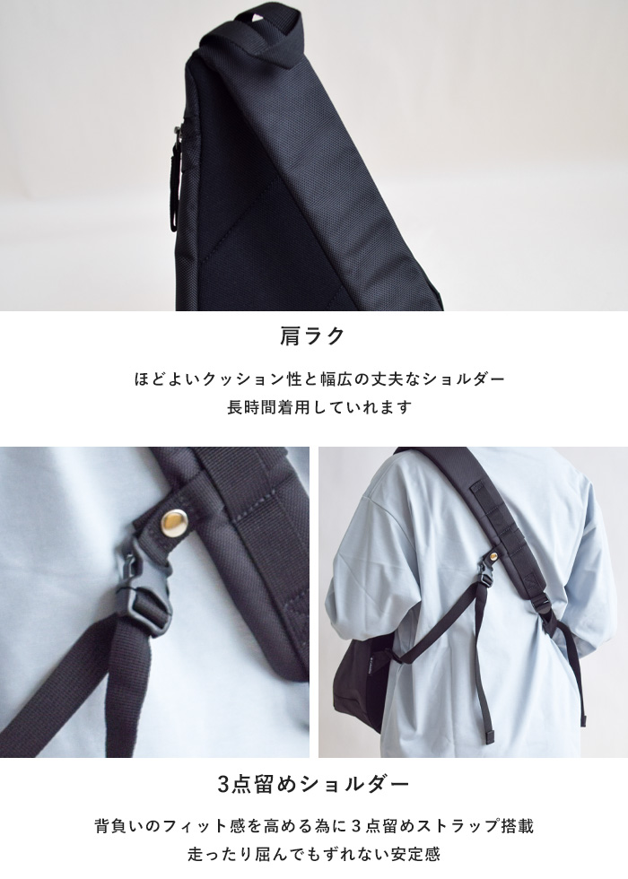 ■背負いのフィット感を高める3点留めショルダーストラップ