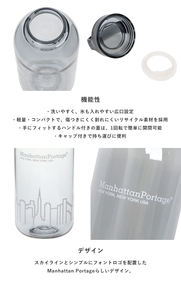 ニューヨークのスカイラインをモチーフにしたスタイリッシュなデザインが目を引く、Manhattan Portageのクリアボトル。 「好きなドリンクを持ち歩くだけでなく、ファッションの一部として楽しんでほしい」という洗練された形状のアイテムに、爽やかにブランドロゴをホワイトカラーで施し、アーバンライフで映えるモデルに仕上がりました。 |