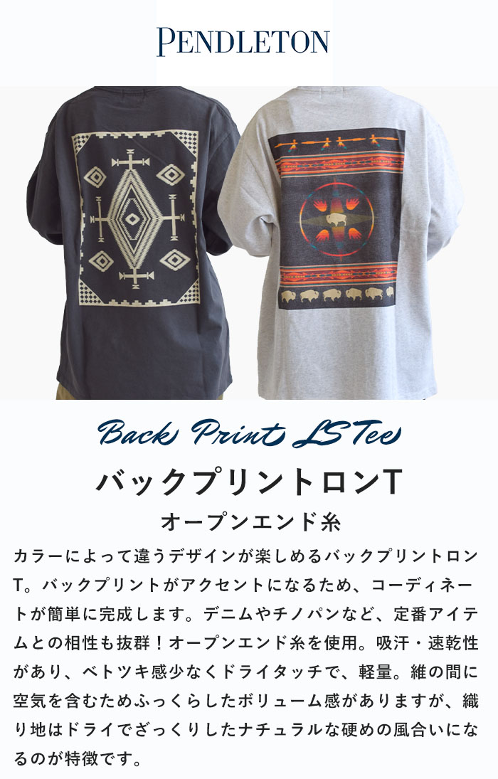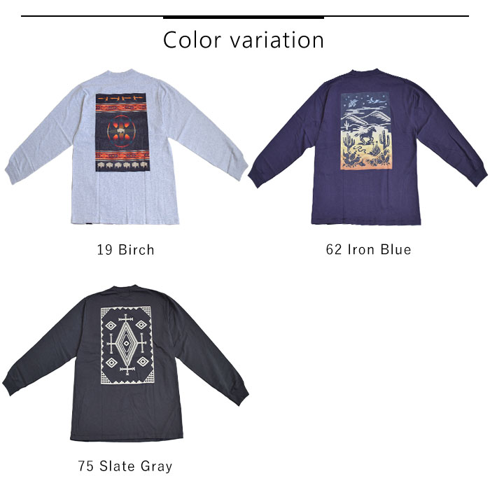 | 商品説明 | カラーによって違うデザインが楽しめるバックプリントロンT。 バックプリントがアクセントになるため、コーディネートが簡単に完成します。デニムやチノパンなど、定番アイテムとの相性も抜群です。 オープンエンド糸を使用。 |