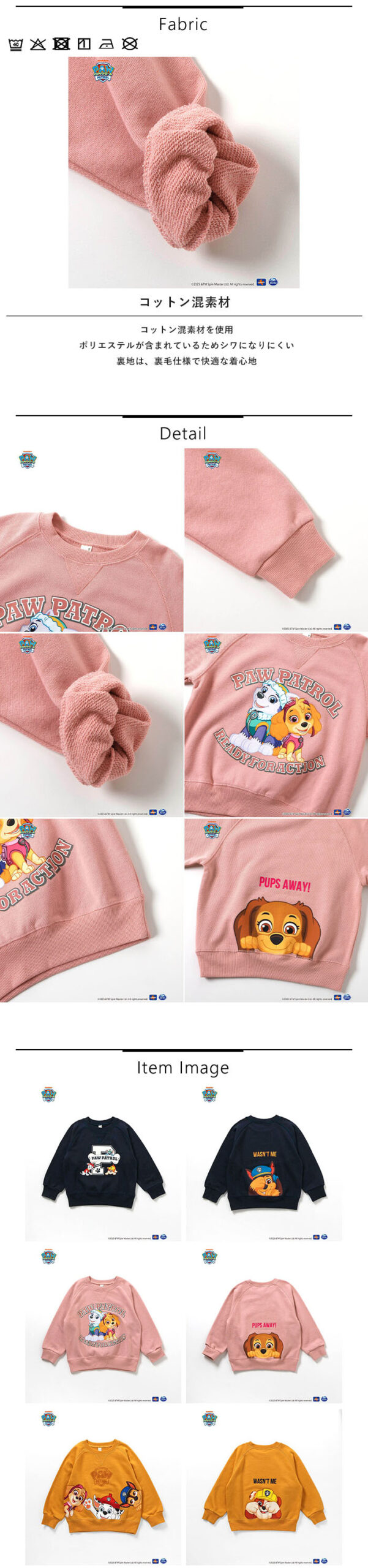 パウ・パトロールの子犬たちがトレーナーになって登場! 1枚ではもちろん、インナーと合わせて着回しも楽しめます! <お取り扱いのご注意> |
