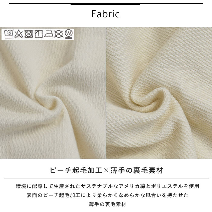 | 素材 | CVC Sueded Light 本体:コットン80% ポリエステル20% リブ部分:コットン95% ポリウレタン5% |