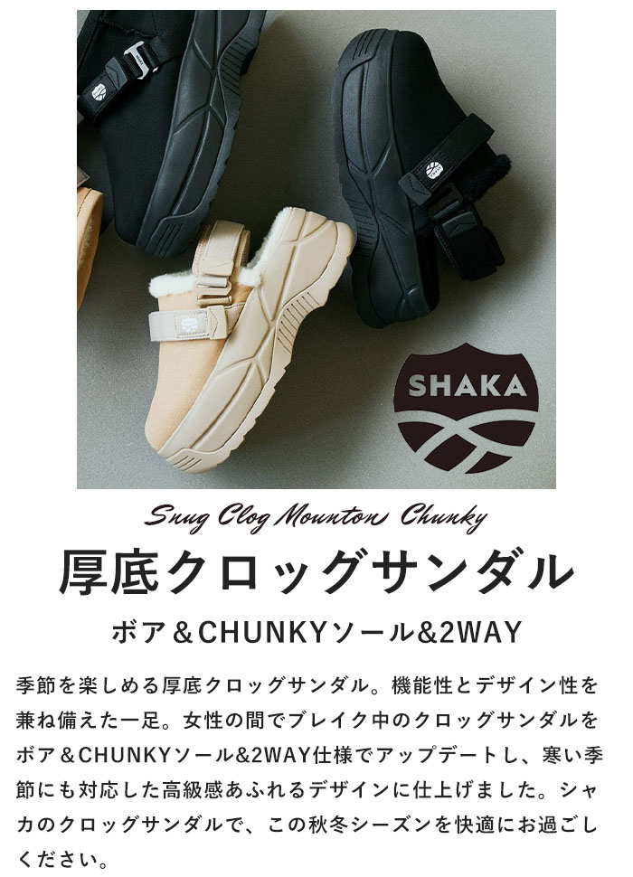 SHAKA(シャカ)の新作クロッグサンダルで、この秋冬シーズンを快適にお過ごしください。