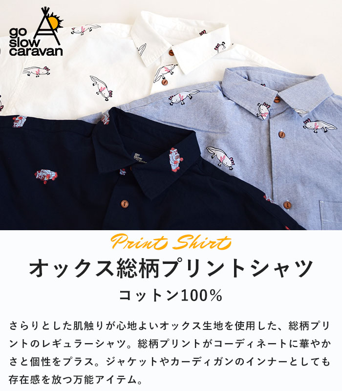 【go slow caravan】カジュアルシャツ メンズ レディース オックス 総柄 ウーパールーパー ロボット