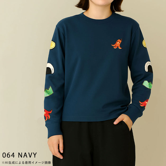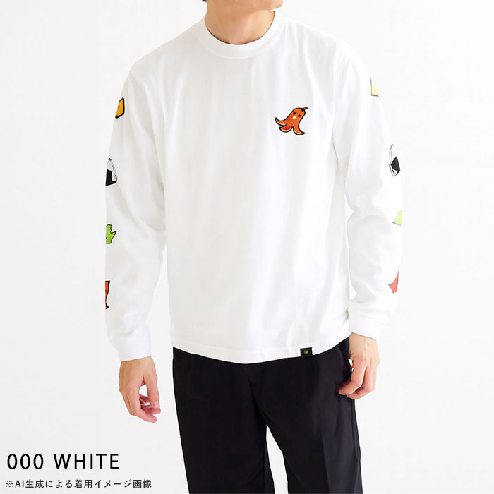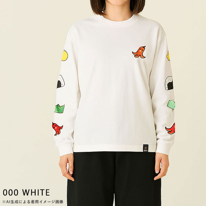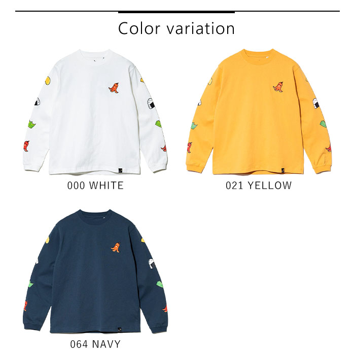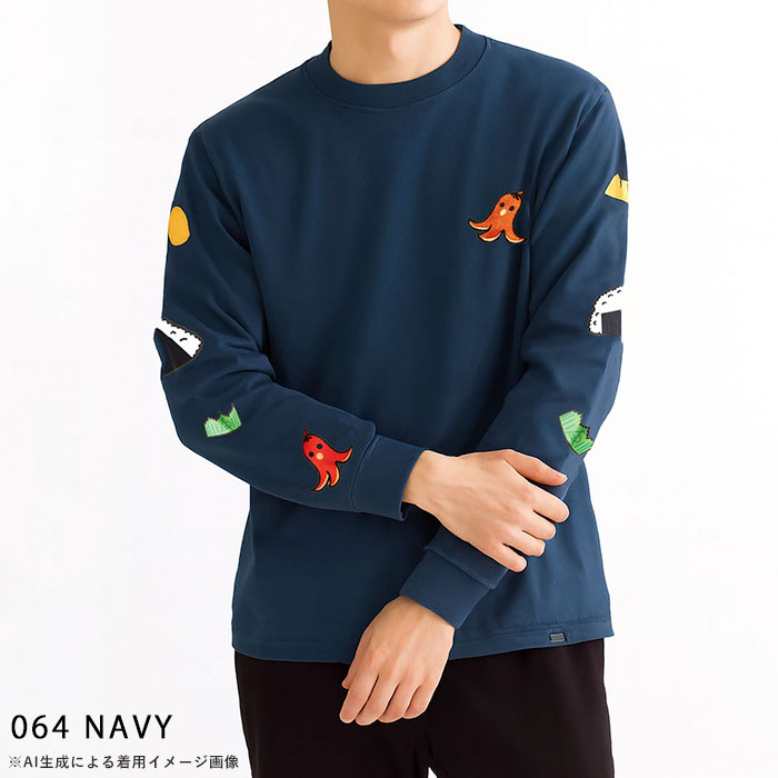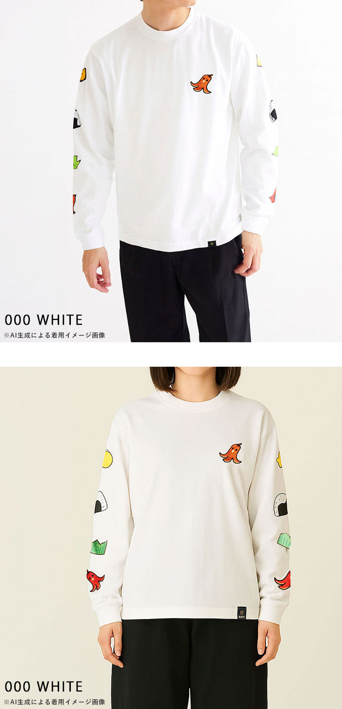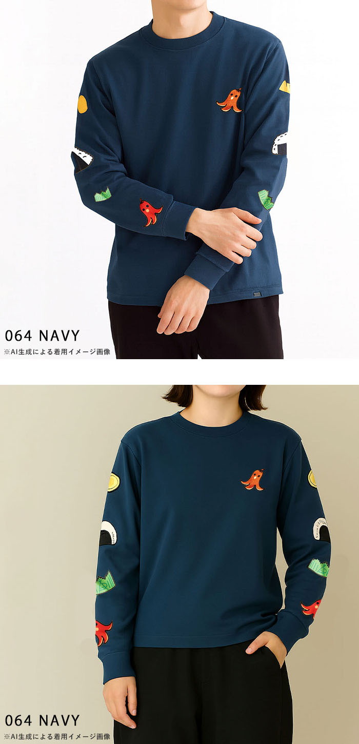 | 商品説明 | 胸元にはタコさんウインナーをワンポイントで刺繍し、袖にはお弁当の具材たちをライン状にあしらった遊び心満点のロングスリーブTシャツ
