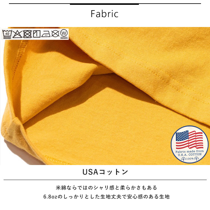 | 素材 | 綿100% 【USA COTTON 】 米綿で編立てた年間定番のオリジナル天素材。米綿ならではのシャリ感と柔らかさもある6.8ozのしっかりとした生地で、首回りや袖口は、着用お洗濯を繰り返しても伸びづらいフライスリブ素材を使用。気兼ねなくデイリーユースできる生地です。 |